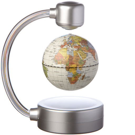 Globen svävar magiskt mitt i tomma intet, uppburen av ett kraftigt magnetfält. En mikrodator i foten justerar magnetfältets styrka tusentals gånger per sekund för att hålla globen stabil.