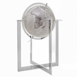 Elegant jordglob i annorlunda stil, med svarta kontinenter på silverfärgade hav.Hela jordgloben har matt yta och klotet kan rotera runt två axlar.Alla texter är på engelska.https://jordglob.se/produkter/jordglob-emform-saturn-30cm-matt-silver-emf105 -